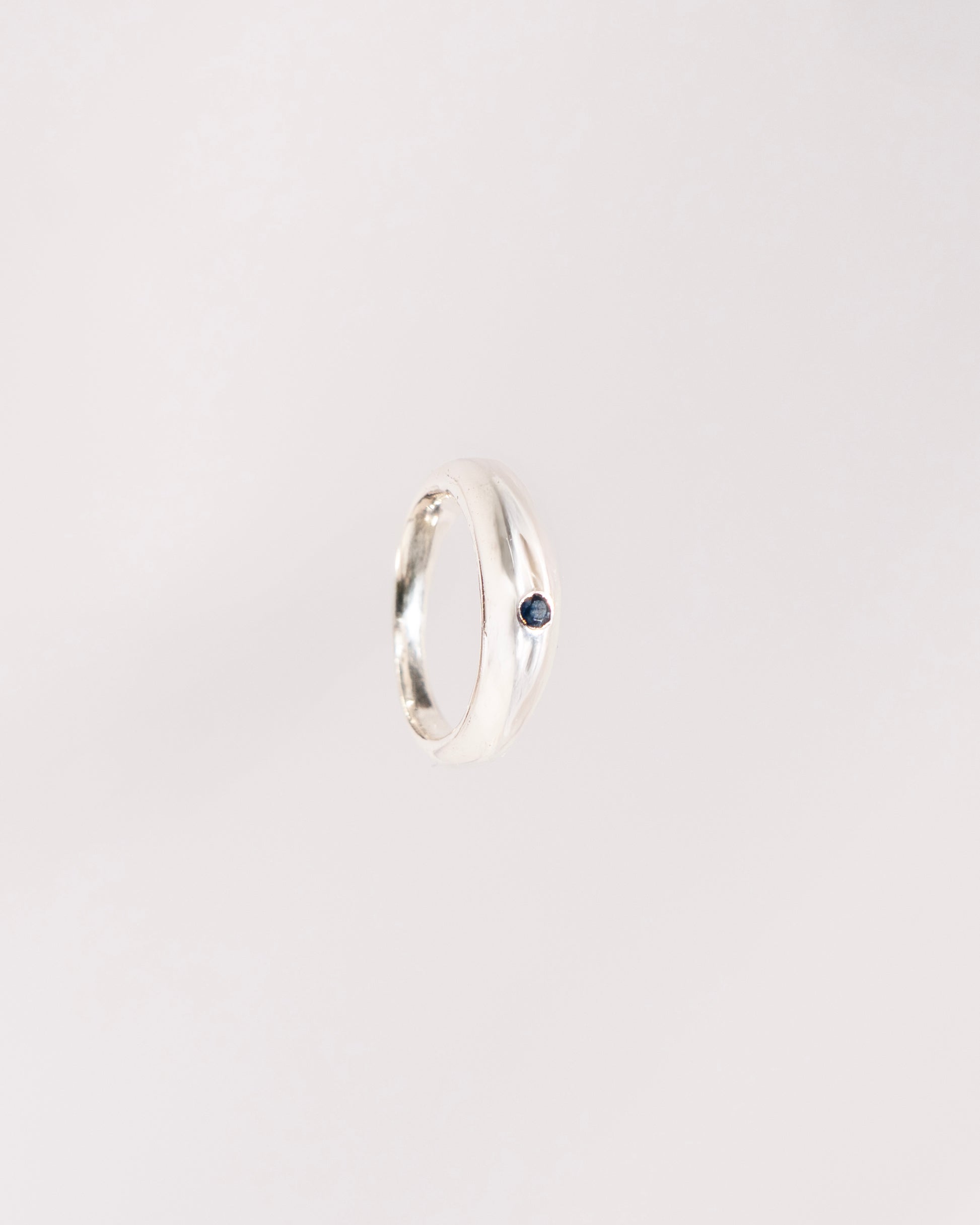 Anillo de plata 925 con 1 zafiro. Tiene las orillas curveadas punto mas grueso de 4.5mm y punto mas delgado de 1.5mm.