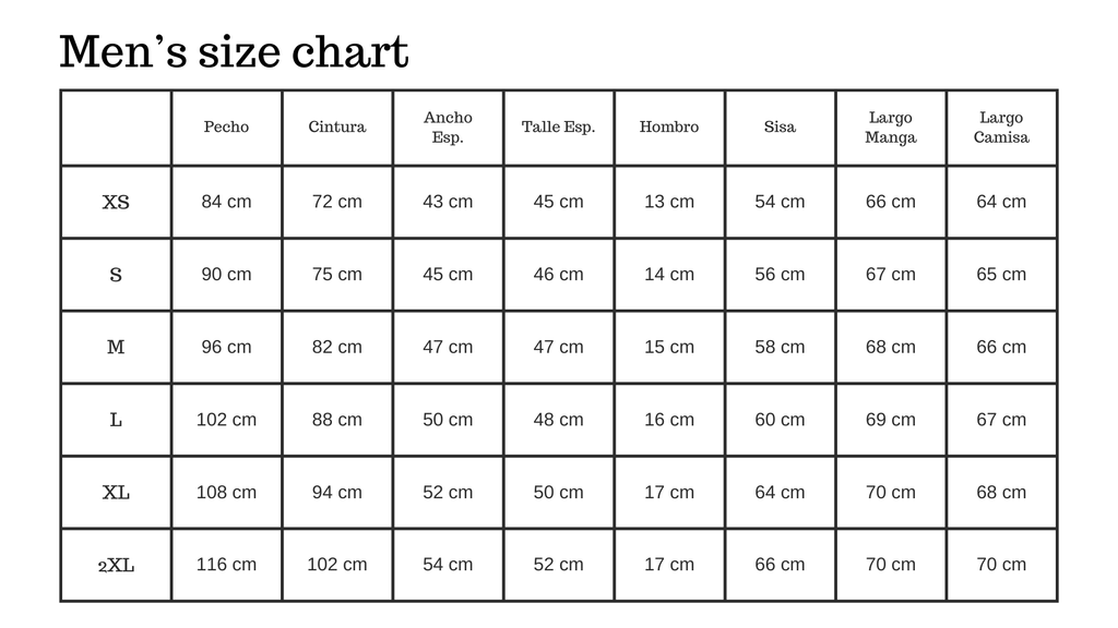 Les vêtements sur mesure ne peuvent être ni repris ni échangés, car ils sont confectionnés spécialement pour chaque client. Le client est responsable de fournir correctement ses mesures. Important : Si les mesures ne sont pas envoyées à l'email abl.estudio.contact@gmail.com. dans la première heure après avoir effectué l'achat, ne seront pas prises en compte. Dans ce cas, une taille standard ou des mesures disponibles seront utilisées. Si les mesures sont envoyées en retard, il n'y a aucune garantie qu'elles puissent être appliquées au vêtement.